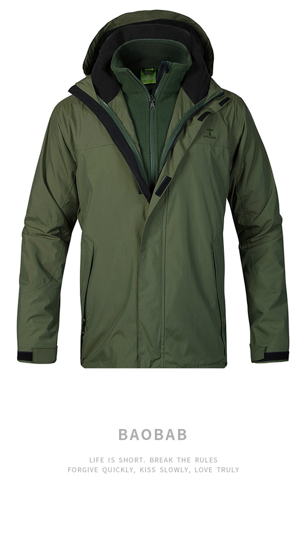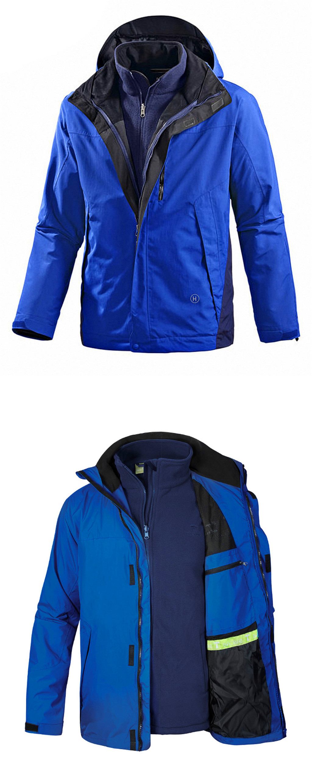 Waterproof jacket men outdoor jacket 3 in 1 jacket, Custom design logo size color logo are welcome